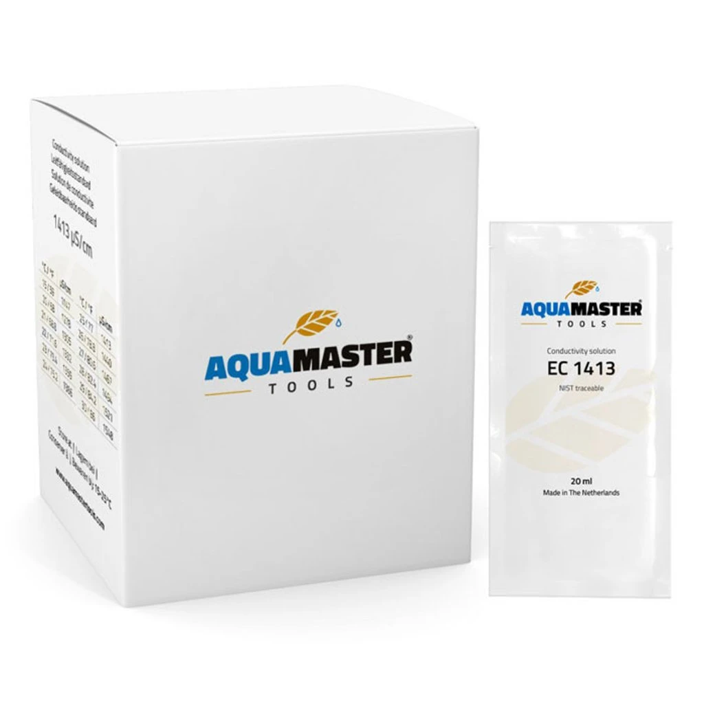 Aqua Master EC 1413 calibration solution. Traceable to NIST standard. Close immediately after use. Store between 59-77°F (15-25°C). Do not return liquid.