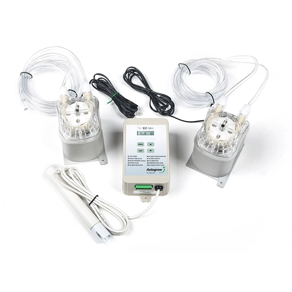 This latest monitor/controller has built upon a pedigree of simplicity and innovative features. The EC Mini may be used as a mains-powered monitor or, by adding two peristaltic pumps, it becomes a fully functional dosing system, managing fluctuations in either your Electric Conductivity, Conductivity Factor, or Total Dissolved Solids. EC, CF, and TDS fluctuations in your reservoir are not only time-consuming to correct but can have negative effects on your crop performance.