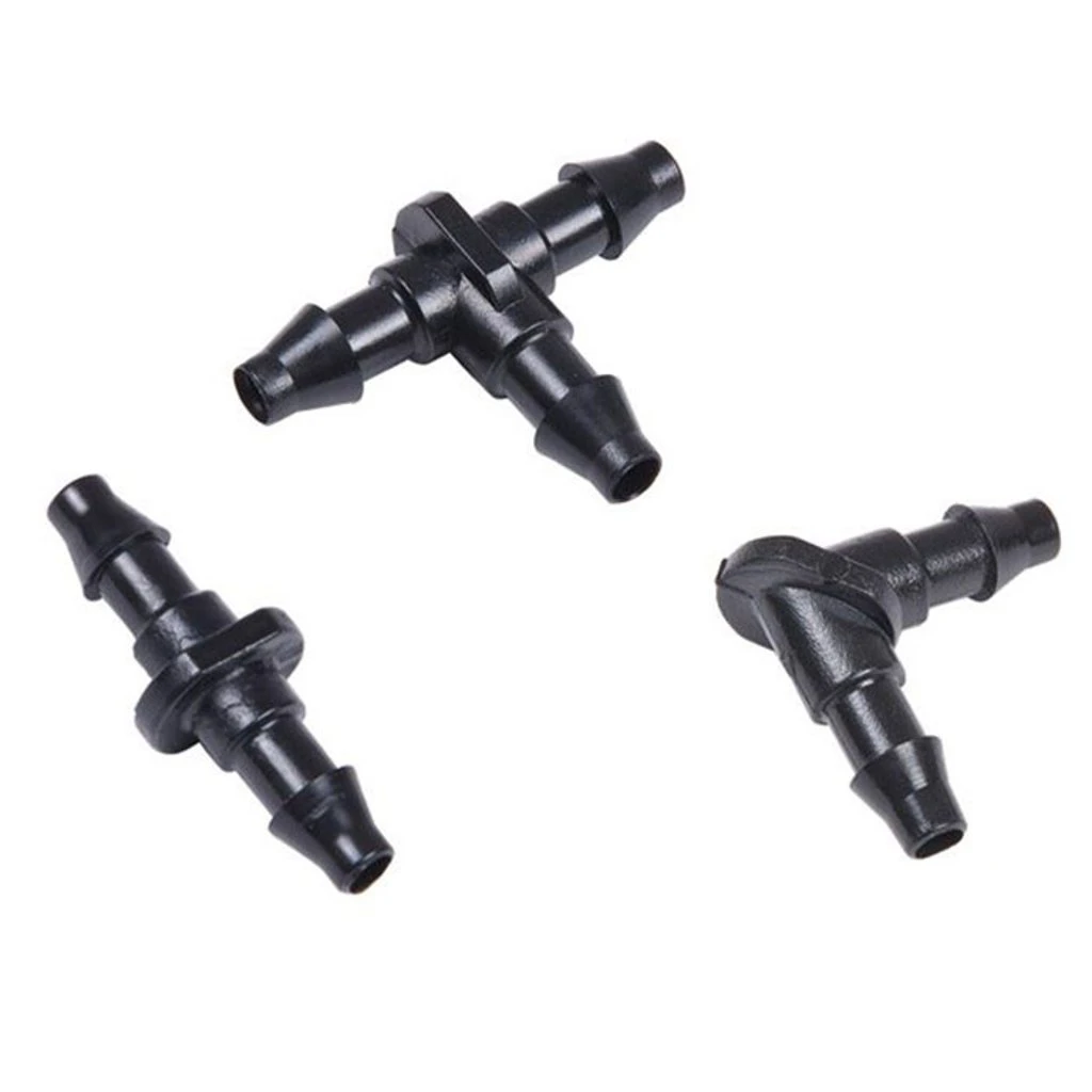 The 1/4” barbed fittings are used in the installation and connections of all brands of 1/4” poly drip tubing and 1/4″ drip line (.140″ ID to .170″ ID). The fittings are pushed into the distribution and drip tubing for a very tight connection. They can be used to connect poly or vinyl tubing.