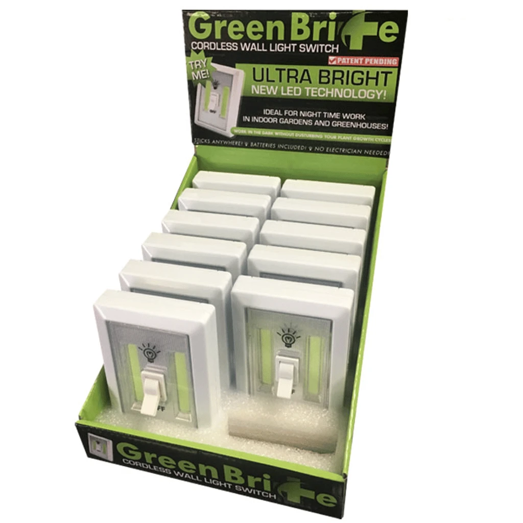 GreenBrite LED Cordless Wall Light Switch. Ideal for night time work in indoor gardens and greenhouses. Work in the dark without disturbing your plant growth cycles!