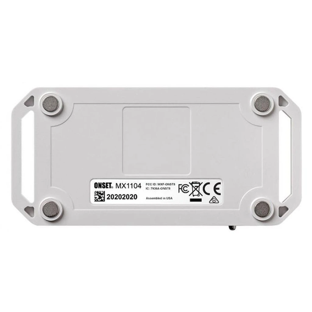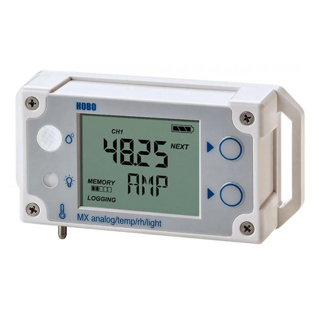 The MX1104 measures and transmits temperature, relative humidity, and light intensity data wirelessly. Includes an external analog input to attach a variety of additional sensors.