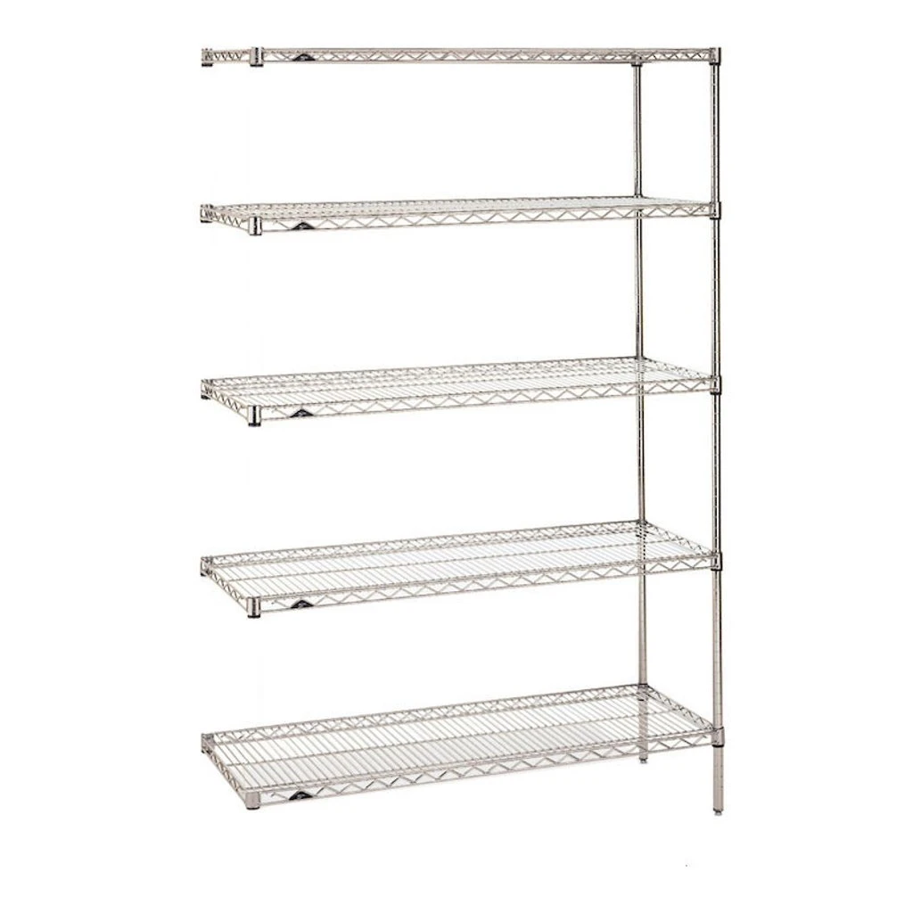 It attaches easily to your existing Super Erecta structure to instantly increase the storage capabilities of your facility. This convenient, easy-to-assemble kit includes a total of five shelves, two 74″ SiteSelect posts, and 10 “S” hooks. A durable chrome-plated nickel finish is designed for dry environments that are also low in humidity, making the unit perfect for storing bulk nutrients, heavy garden tools, disposable items, and more. Two “S” hooks are supplied per shelf and are used to easily attach the piece to its adjacent unit. In addition, an open wire design minimizes dust accumulation and provides increased visibility of the shelf’s contents, ensuring the unit is easy to keep clean and organized.