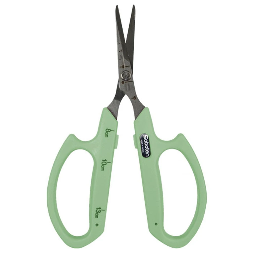 Saboten Stainless Steel Blade Trimming Scissors features an ergonomic design and non-slip grip for easy trimming. The sharp tip design allows for quick and precision trimming especially in tough to reach areas. Saboten Trimming Scissors also feature measurement indications on the blade and handles for easy measuring and are available in both straight and angled models.