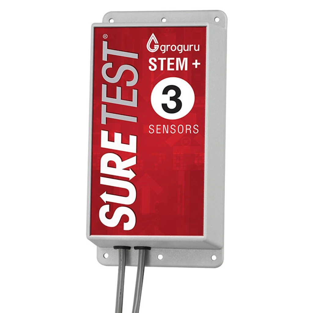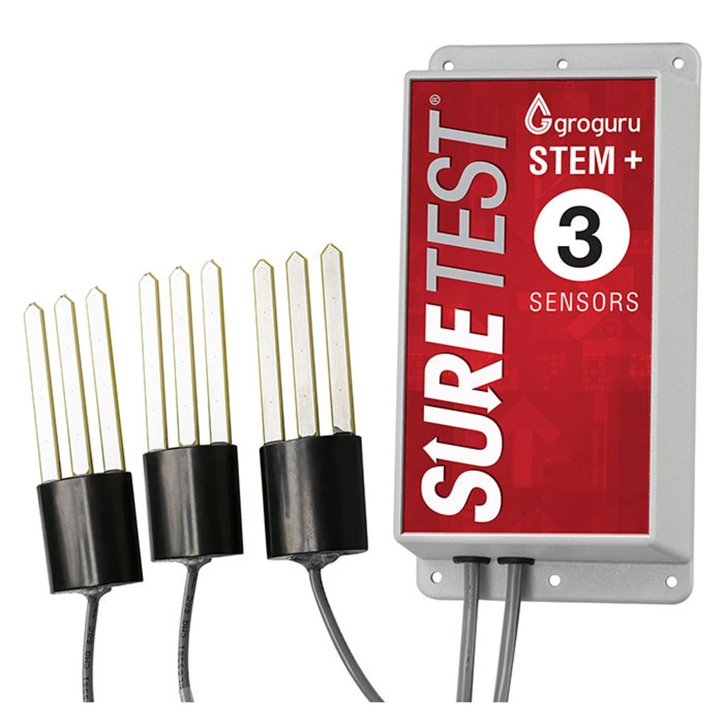 The sensors on the Sure Test GroGuru Stem have been designed to provide you the info about your root zone to make your growing even more successful. These sensors measure the moisture content, Electrical Conductivity (EC), salinity and temperature of your medium. These lab rated sensors are highly accurate, very reliable and have passed SWAT certification conducted by Irrigation Association. The Stem communicates wirelessly with a Base unit called the Collector which can be up to 1000 feet away (batteries not included). The Stems report measurements from each of the sensors once every 30 minutes. This information is then reported to software on your desktop and/or smartphone app.