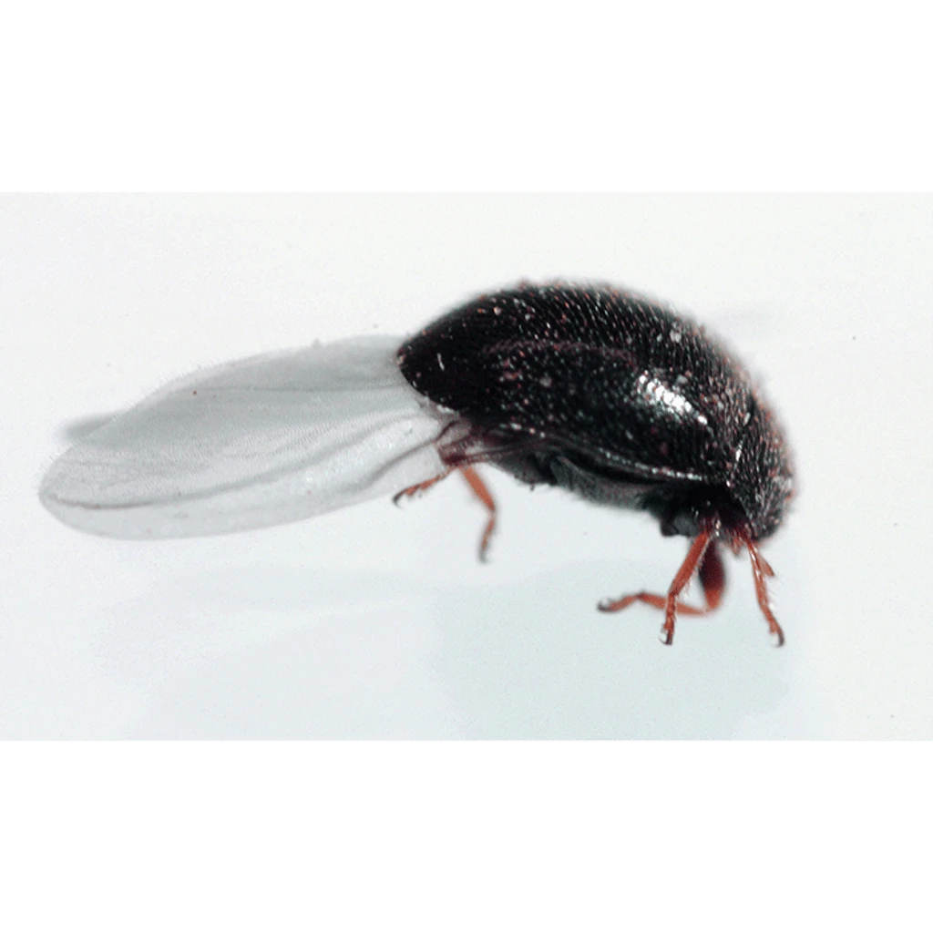 Delphastus is a native, small 1/15th inch, black/ brown beetle in the lady beetle family. During their approx. 30 day life cycle females can lay up to 4 eggs per day. In order to lay eggs the female must consume at least 100 whitefly eggs a day. Larva and pupa stages take approx. 6 days each. Larvae are cream colored, alligator like insects. Research has found that each beetle can eat up to 10,000 whitefly eggs.