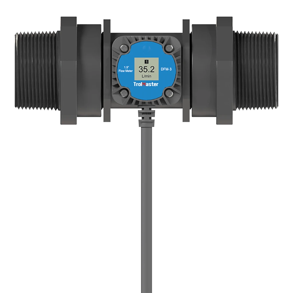 The DFM 1, 2, and 3 are digital inline flow meters that provide accurate measurements of water or a nutrient solution flowing through a fluid pipe. They are specially designed for the Aqua-X Pro system. When it’s used with the Aqua-X Pro, users can set the irrigation schedule to be controlled “By volume”, and the DFM will measure and allow the desired and precise amount of nutrient solution to be used. The DFM-2 sensor can also be used for future functions and may include the ability to sense water leaks and / or line blockages.