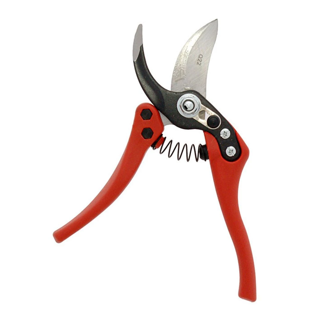 - Pruners have a one-hand locking mechanism with steel button.